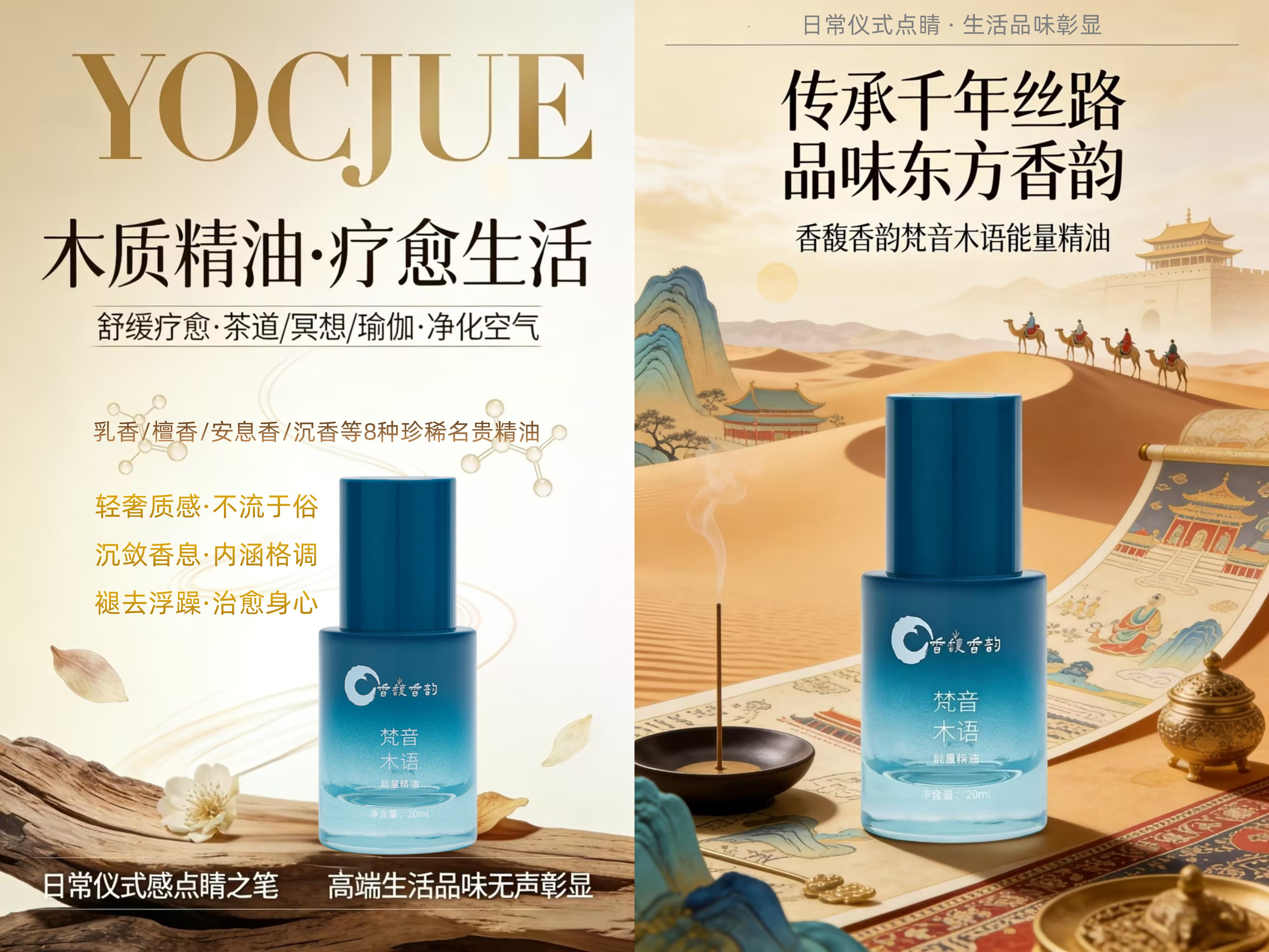 梵音木语能量精油,传承千年丝绸之路的文明与交融,承载东方香道的深厚底蕴与轻奢雅致。